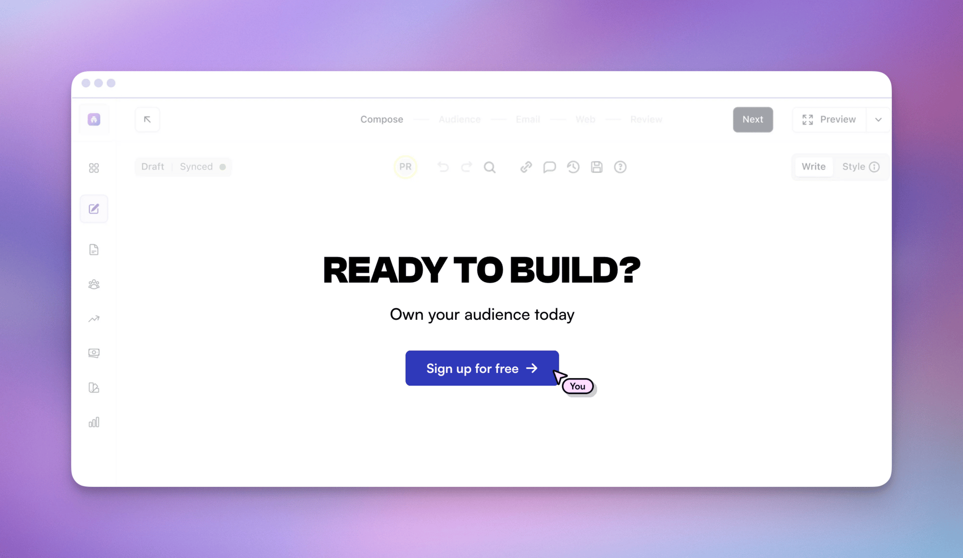 Stand out in the inbox: the newsletter builder lets you seamlessly design and style your newsletter as you write.